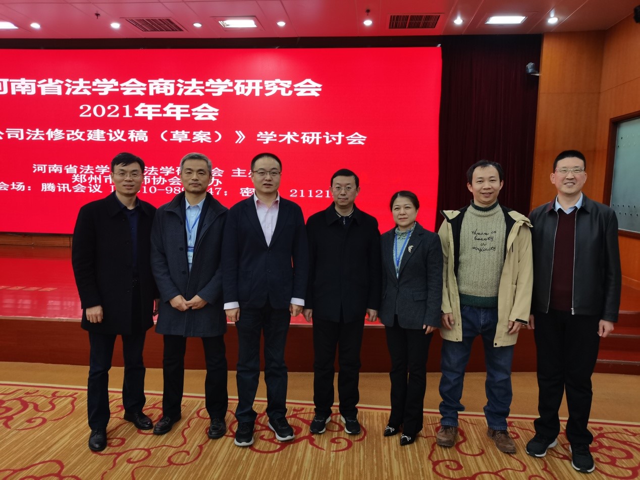 2021年12月12日,由河南省法学会商法学研究会主办、郑州市律师协会承办的“河南省法学会商法学研究会2021年年会暨《公司法修改建议稿(草案)》学术研讨会” 在郑州紫荆山宾馆和线上同步举行。学院教师李志强、王长华、岳冰、赵亚、魏岚、梁学涛、宣言、李琳和校法学实验教学中心教师张安毅、宁杰参加了本次会议。