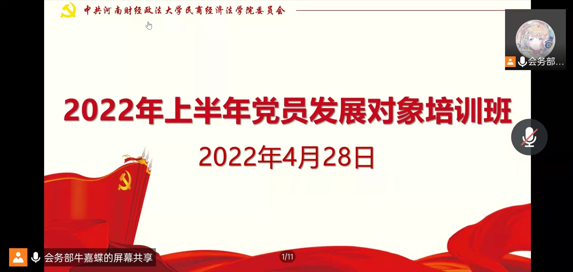 4月28日,学院组织党员发展对象学习党的十九届六中全会精神,培训会以线上形式举行,学院团总支书记李浩主讲,学院全体党员发展对象参加培训。