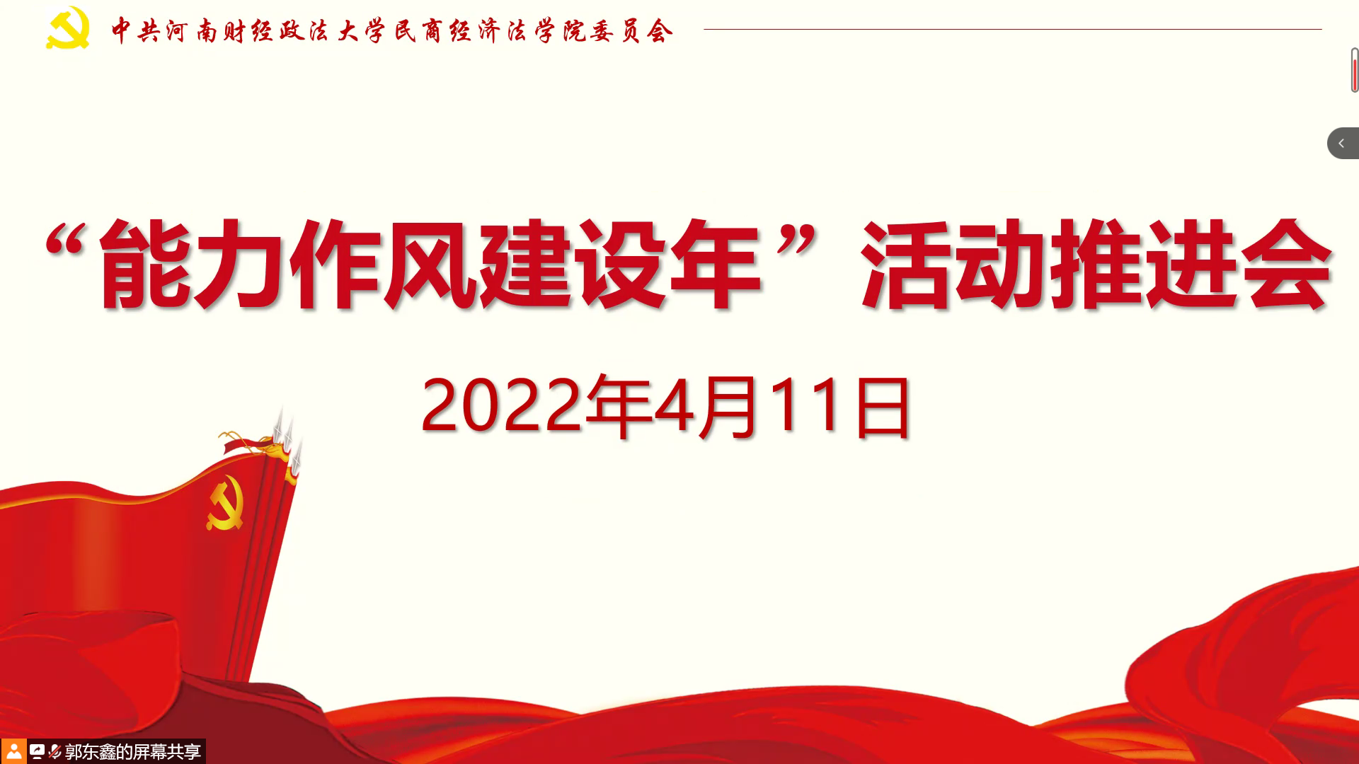 学院于4月11日在线上召开“能力作风建设年”活动推进会,学院团总支书记李浩和团总支副书记段晓俊,学生第一党支部、第二党支部全体党员参加会议。会议由段晓俊支持。