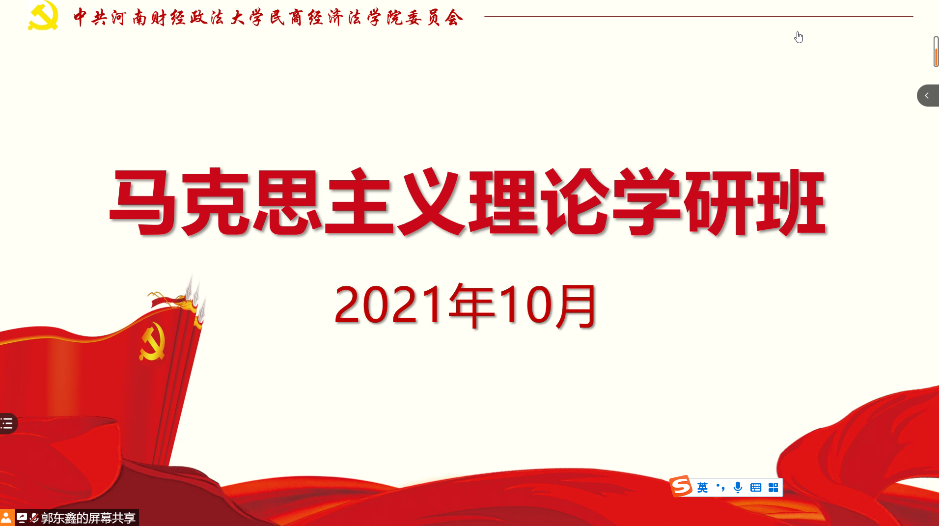 为深入学习贯彻习近平新时代中国特色社会主义思想,坚定理想信念,不断提升学院党员发展质量,学院于10月12日以线上会议的方式举办“马克思主义理论学研班”2021年下半年党员发展对象第一次培训。学院2021年下半年党员发展对象参加,会议由学院团总支副书记段晓俊主持。