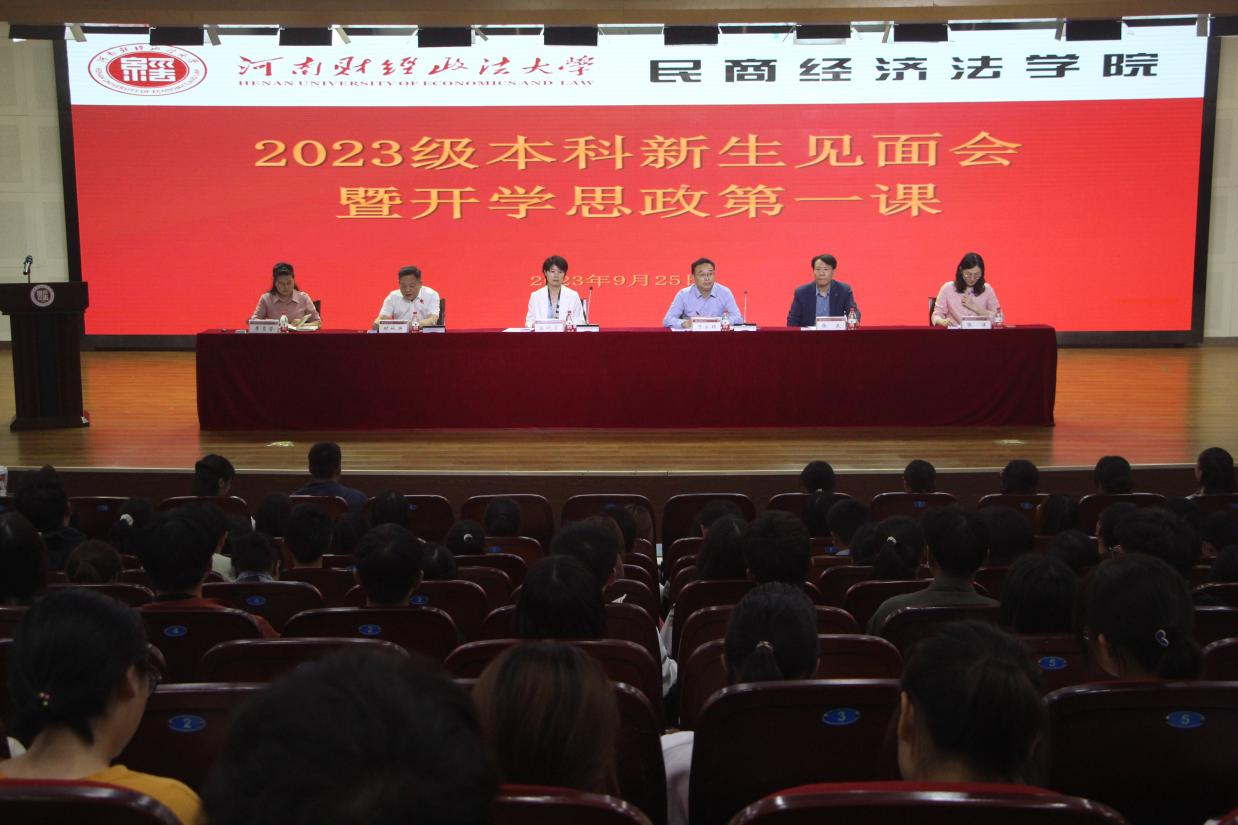 弓永振以“胸怀爱国心,常怀报国情,心存强国志”为题为2023级新生讲授了开学思政第一课。他从“心怀天下,自立自强;找到定位,坚定理想;把握时机,全面成长;加强修身,提升修养”四个方面教育引导学生不忘初心,磨炼意志,艰苦奋斗。希望同学们用汗水浇灌梦想,用奋斗点亮青春,以青春之名续写“财大故事”、成就人生华章。时从庚从不断加强思想政治学习,提高政治素养;认真学习,不断提高学业成绩;严格执行纪律,确保安全稳定三个方面提出要求。张良和张洋分别对法学专业和知识产权专业学生进行了专业教育。