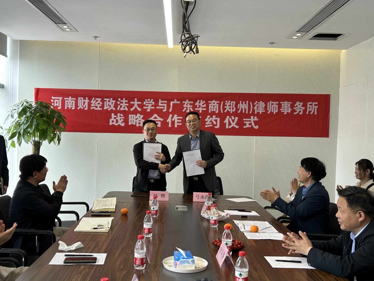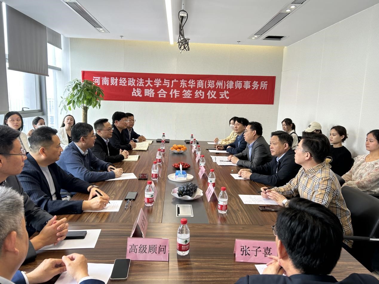 弓永振向广东华商(郑州)律师事务所给予学校的关心支持表示感谢,并简要介绍了学校的基本情况。他希望通过此次合作,能进一步推进双方在人才培养、科学研究及学生就业等方面的深度合作。