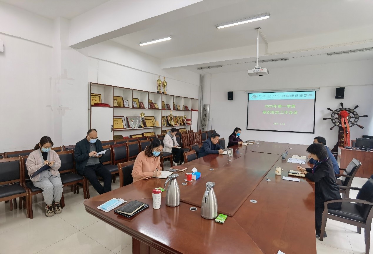 3月20日,学院党委召开2023年第一季度意识形态工作会议。会议由学院党委书记弓永振主持,学院班子成员,学院党政办公室、团委办公室及教学办公室相关工作人员参加会议。