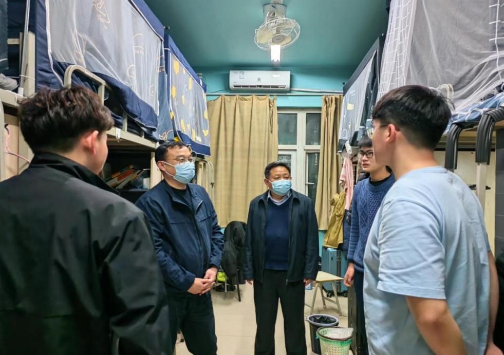 2月28日晚,学院党委书记弓永振、党委副书记时从庚及学院辅导员走访学生宿舍。