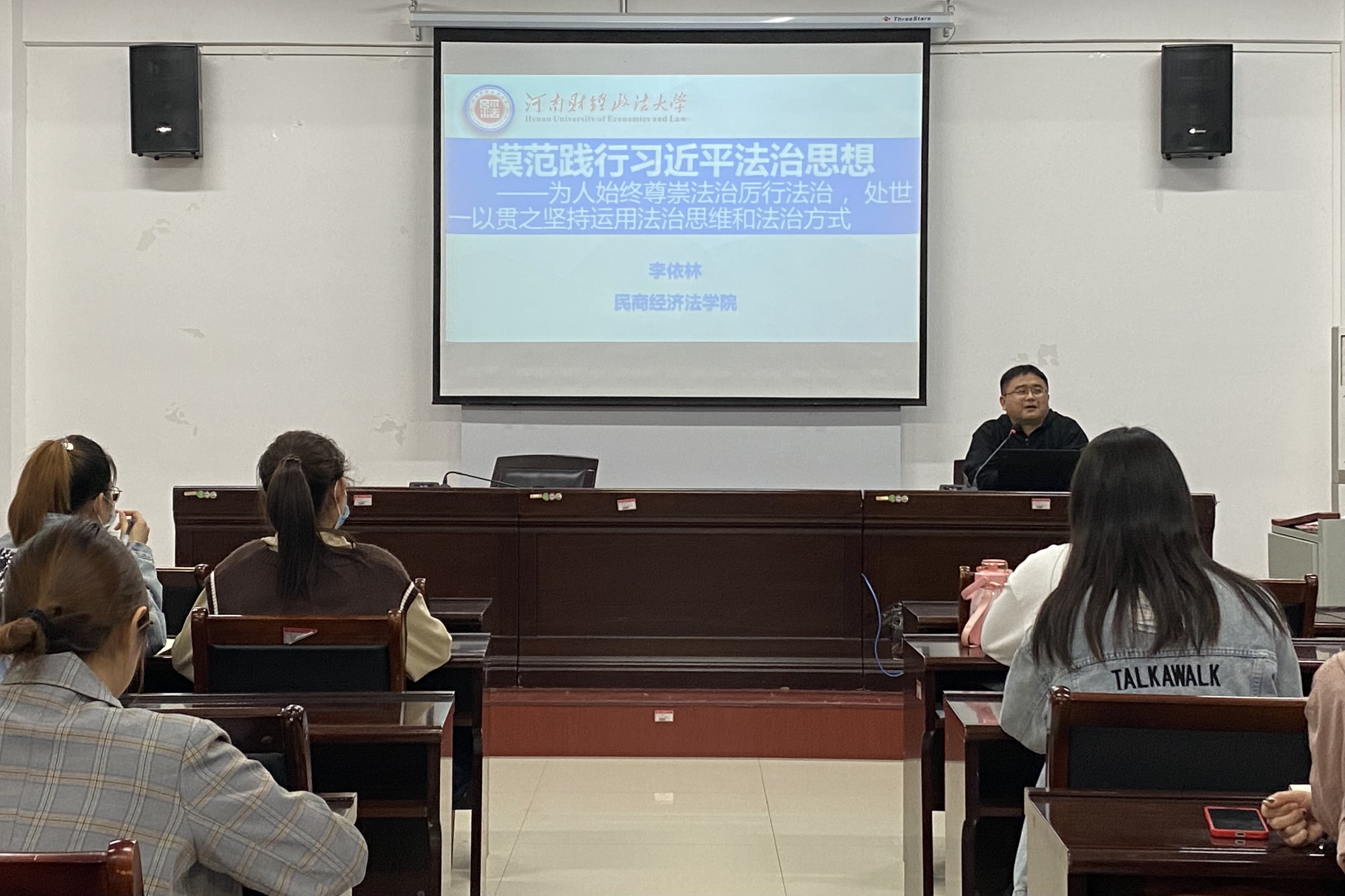 学院于4月19日在学院209会议室开展主题为“模范践行习近平法治思想”的专题讲座,学院副教授李依林主讲,学院学生代表参加讲座。讲座由学院辅导员张璐瑶主持。