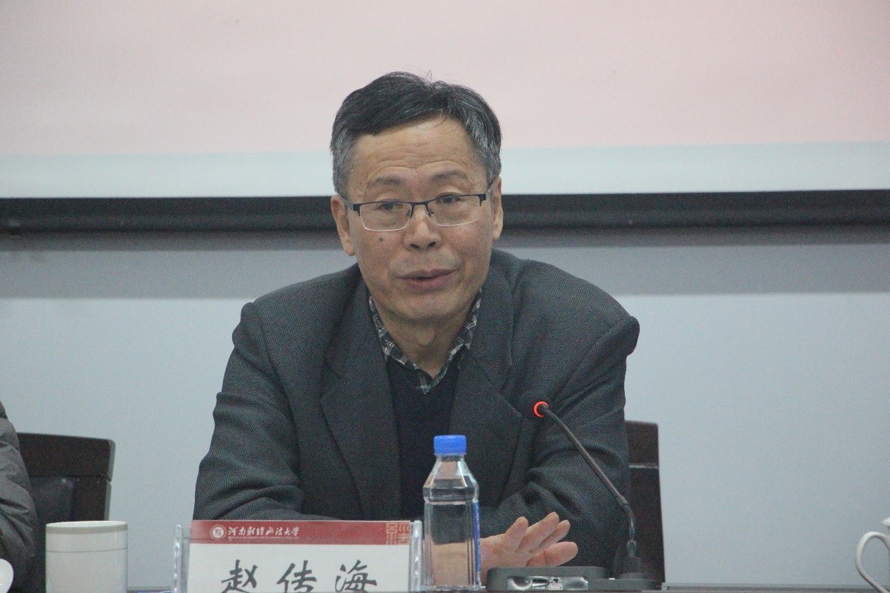 赵传海代表学校在签约仪式上致辞,感谢孙海鹏对母校的回馈,希望以此次教学科研实践基地建立为契机,双方进一步开展深入的、形式多样的交流,进一步加强在人才培养等领域的合作,共同推动双方在未来的发展道路上取得更大的成绩。并鼓励全体研究生在学校打造的校企合作高端平台中成长成才,共同服务河南经济社会的发展,谱写中原更加出彩的新篇章。