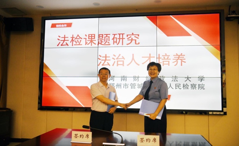 5月16日,学院与郑州市管城回族区人民检察院举行“法检课题研究、法治人才培养”座谈会议暨教学科研实践基地签约授牌仪式。学校法学部执行部长、学院院长张安毅教授、学术院长张良教授、姚秋英副教授、齐凌艺博士,郑州市管城回族区人民检察院党组书记、检察长王晗、副检察长王正、孙永记及检察院有关部门同志参加。