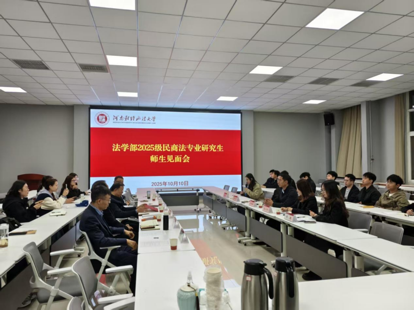 10月10日下午,2025级民商法专业研究生师生见面会在法学部三楼会议室召开。学院院长张安毅教授、民商法专业导师贾辰君副教授、王长华副教授、岳冰副教授、郑州市中级人民法院研究室主任王明振、上海建纬(郑州)律师事务所高级合伙人高小琦律师、北京大成(郑州)律师事务所合伙人高歌律师以及民商法专业研究生参会。会议由法学部学术委员会副主任、学院张良教授主持。