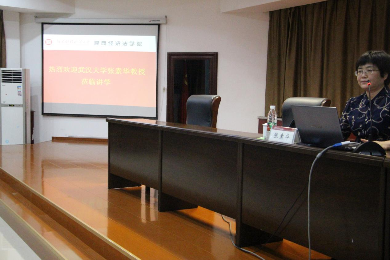 2024年5月14日晚,应学院邀请,武汉大学法学院博士生导师张素华教授在学校教职工活动中心408会议室作题为“民法典合同编通则司法解释中的重大问题”的学术报告。学院部分师生及学院部分教学科研实践基地的代表参加报告会,报告会由学院副院长张良教授主持。